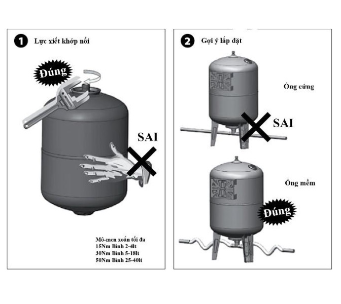 - Chuẩn bị: Kiểm tra bình tích áp và các phụ kiện đi kèm để đảm bảo chúng không bị hỏng và đủ đầy đủ cho việc lắp đặt.