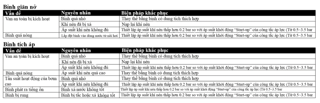 4. Không được sử dụng bình tích áp/bình giãn nở cho bất kì ứng dụng nào ngoài những ứng dụng mà nhà sản xuất đã nêu.